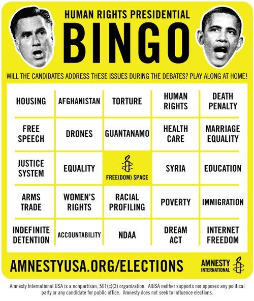 Human Rights Presidential Debate Bingo