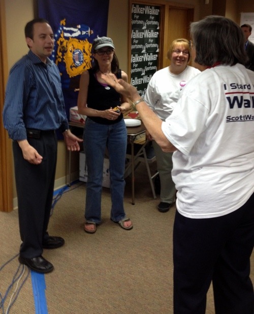 “You know, there aren’t many places in this country where the GOP chairman can show up at a tea party rally and be cheered,” Preibus jokingly told supporters of Walker at campaign headquarters in Wauwatosa, not far from the governor’s family home.